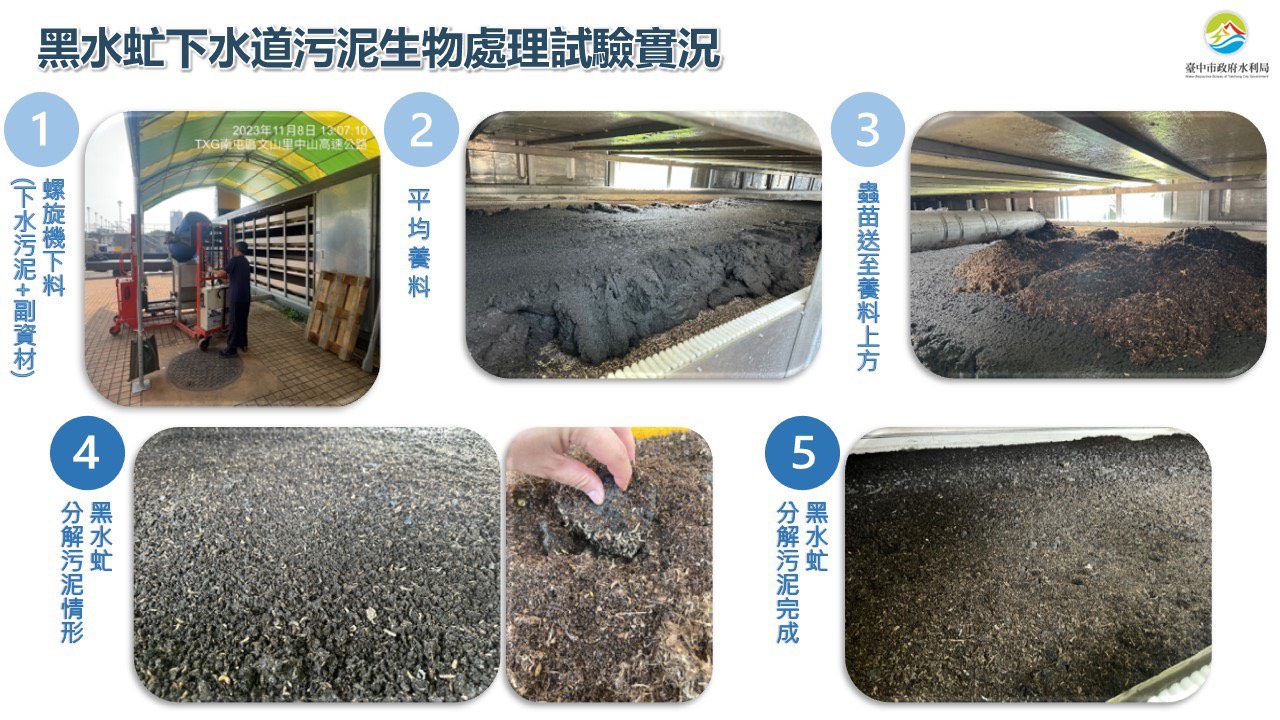 隨著污水下水道接管率持續提升,水資源回收中心產生的廢棄污泥量逐年增加,污泥處理與去化成為推動環境永續的重要課題。台中市政府水利局自2022年起導入黑水虻生物處理技術,將低碳、減量與資源循環概念實際應用於污泥處理流程中,落實2050淨零排放政策目標,展現市府推動永續治理的具體作為。 利用黑水虻幼蟲分解有機質的生物特性,於自動化系統中進行污泥生物處理 水利局長范世億說明,過往廢棄污泥多以焚燒或掩埋方式處理,不僅處理成本高,也伴隨能源消耗與碳排放等環境負荷。市府與國立台灣大學研究團隊合作,利用黑水虻幼蟲分解有機質的生物特性,於自動化系統中進行污泥生物處理,並實際導入水資源回收中心進行長期運轉驗證,作為低碳污泥處理的創新示範。 水利局進一步指出,實際運轉成果顯示,黑水虻生物處理技術可有效降低廢棄污泥重量,減量幅度約達40%,同時具備低能耗、可於污水廠內就地處理等優點,不僅減少污泥外運需求,也降低傳統高能耗處理方式對環境造成的影響,展現其作為替代性污泥處理技術的應用潛力。 黑水虻污泥生物處理試驗過程 水利局補充,相關處理流程已依國際標準完成碳足跡盤查,並通過ISO 14067產品碳足跡第三方查證。評估結果顯示,相較傳統污泥處理方式,黑水虻生物處理系統在整體生命週期中具備顯著減碳效益,且處理後產物可朝生質燃料、固態燃料棒等高值化再利用方向發展,兼顧減量、減碳與能源化利用,為城市邁向淨零轉型提供可行作法。
