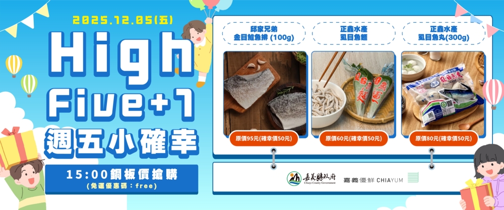 嘉義優鮮水產「High Five+1」銅板價專區掀起搶購熱潮 週週秒殺!