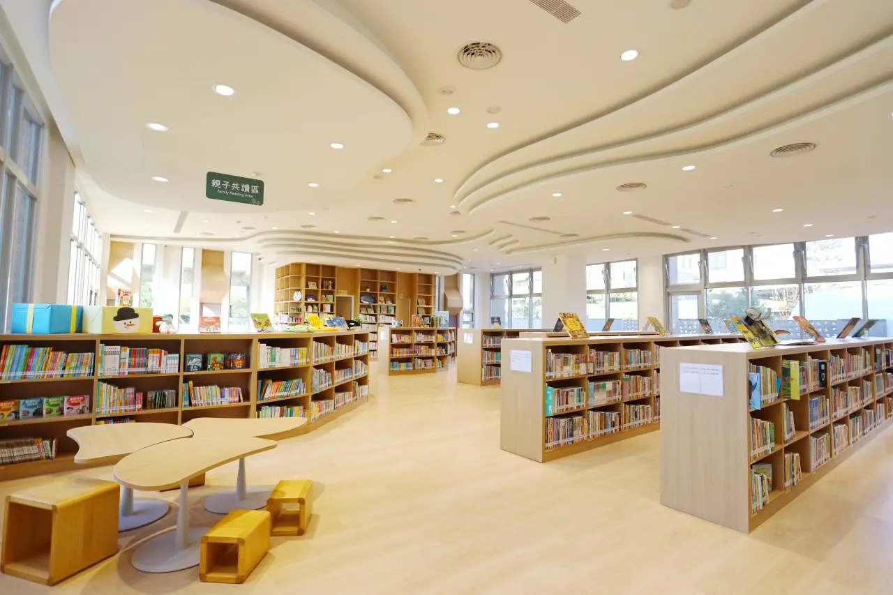 館內同樣展現貼心巧思。溪東圖書館是台中首座全面採用系統模組化家具的公共圖書館,達成「零木作」,降低粉塵與化學膠合物釋放,營造更健康的閱讀場域。家具也可依需求拆組變換,隨社區與使用型態成長。空間規畫兼顧個人閱讀、親子共讀與小型討論,讓不同年齡層都能找到舒適角落。