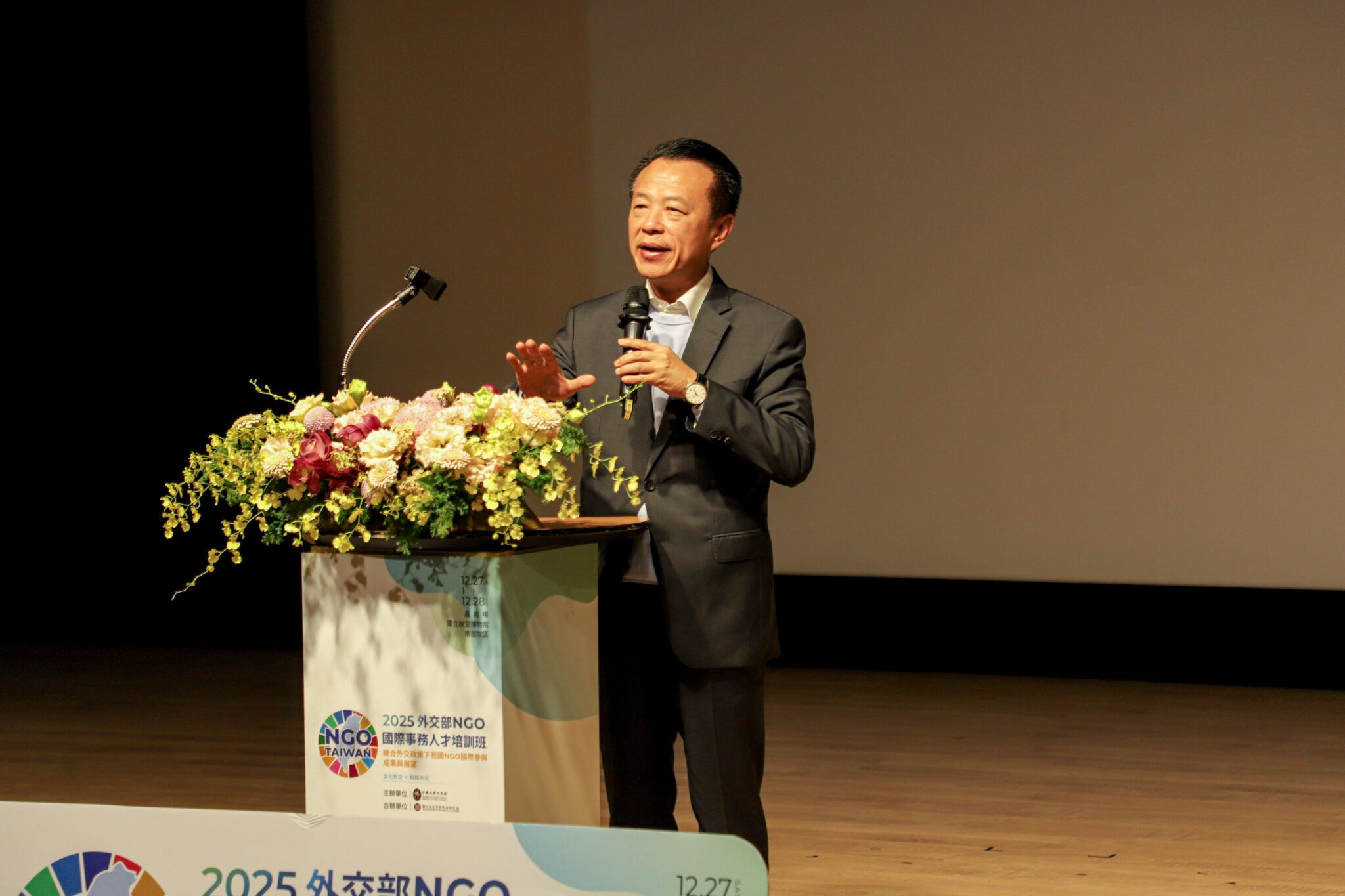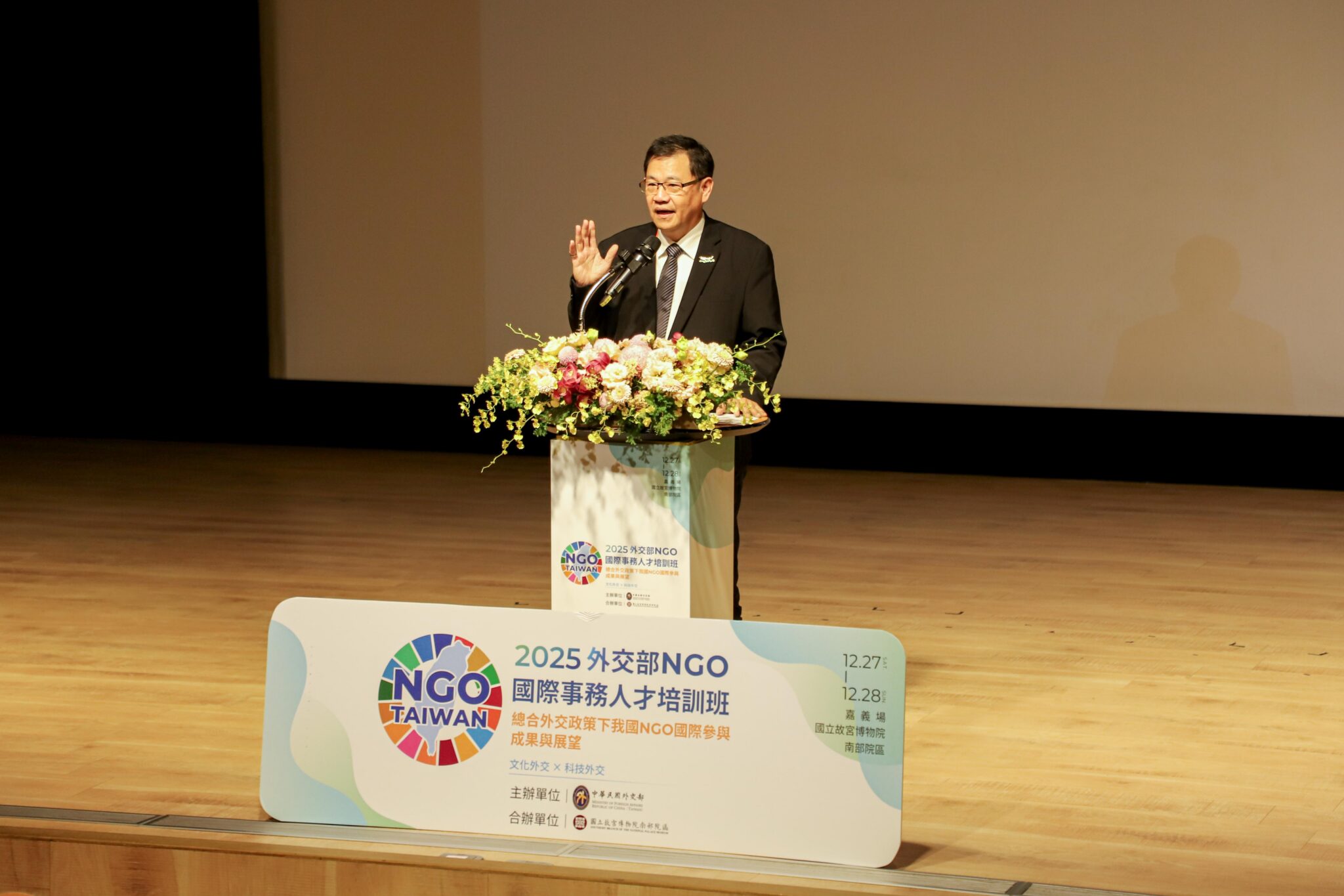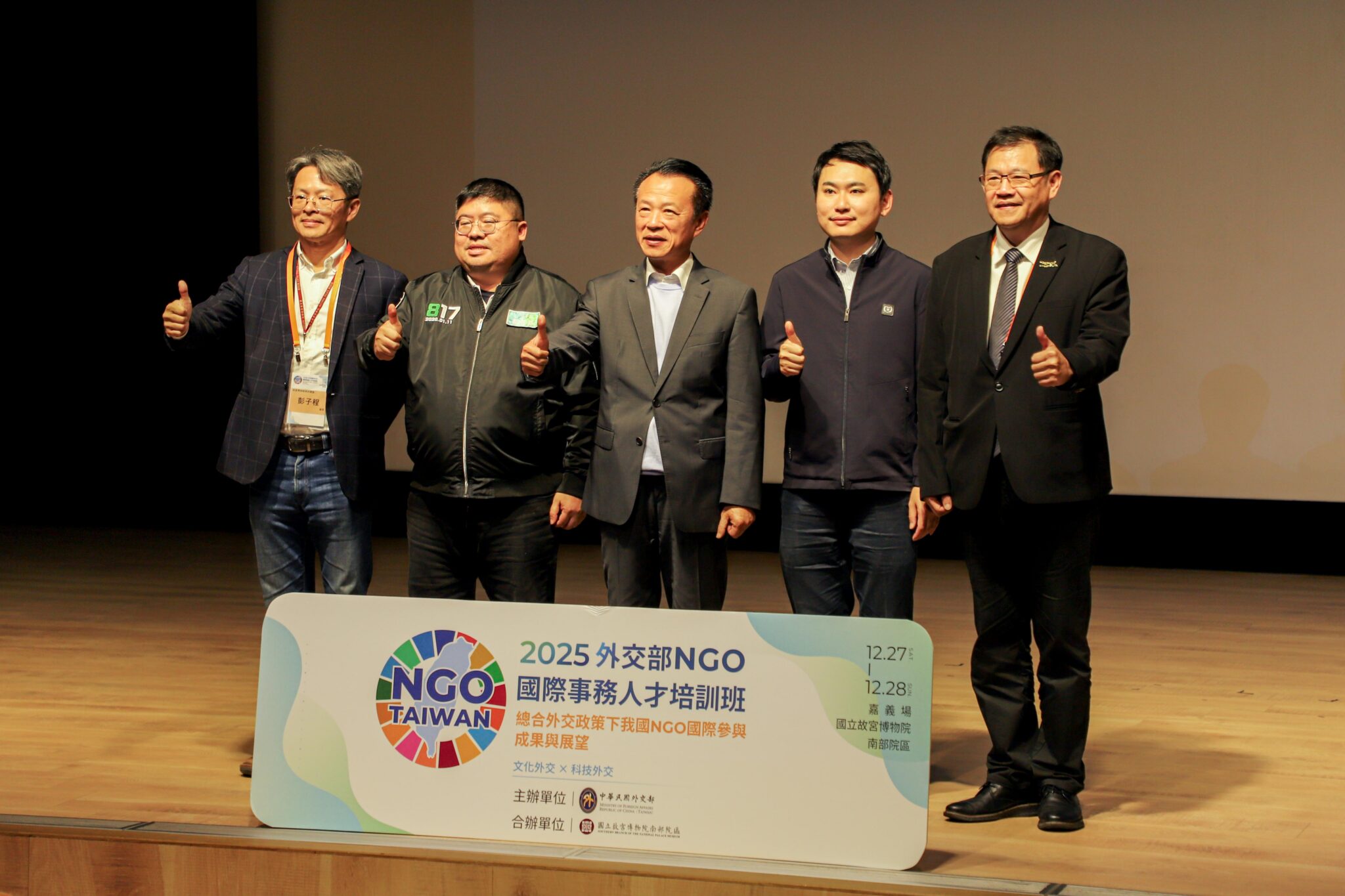 外交部「2025 NGO 國際事務人才培訓班」嘉義場27日至28日在國立故宮博物院南部院區舉行,探討中央攜手地方政府與民間團體推動「總合外交」的實務成果。嘉義縣長翁章梁、立法委員蔡易餘、陳冠廷於27日出席開幕式,勉勵與會的全國各地 NGO 夥伴與青年學子積極學習。