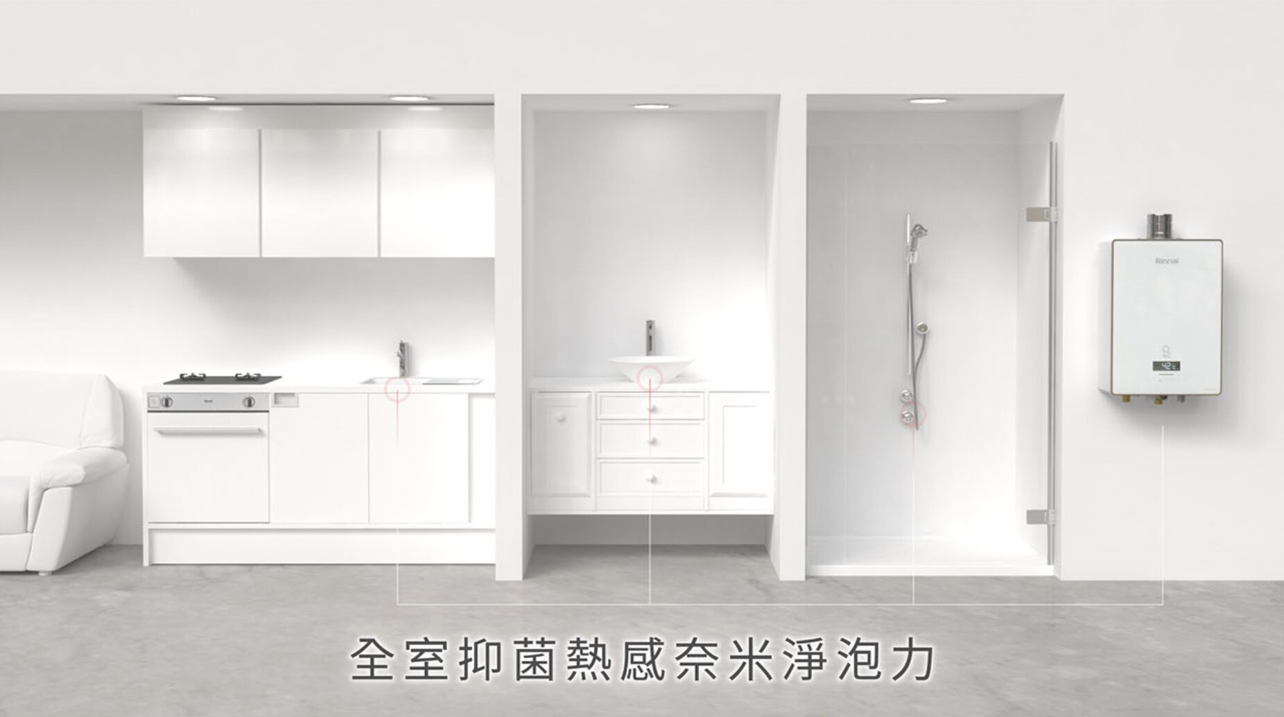 在產品端,林內「UFB 熱感奈米熱水器」是結合日本專利技術與台灣製程的代表作。其核心為日本製奈米氣泡產生器,能製造直徑不到 1 微米的細微氣泡,深入隙縫帶走髒汙。經證實,不僅能減少 39% 的細菌菌落與浴室常見紅色水漬,更可降低 28% 的水垢積留面積;這項強大的清潔動能還能延伸至排水管線,減少 18% 的髒汙殘留,全方位維持居家管路潔淨。