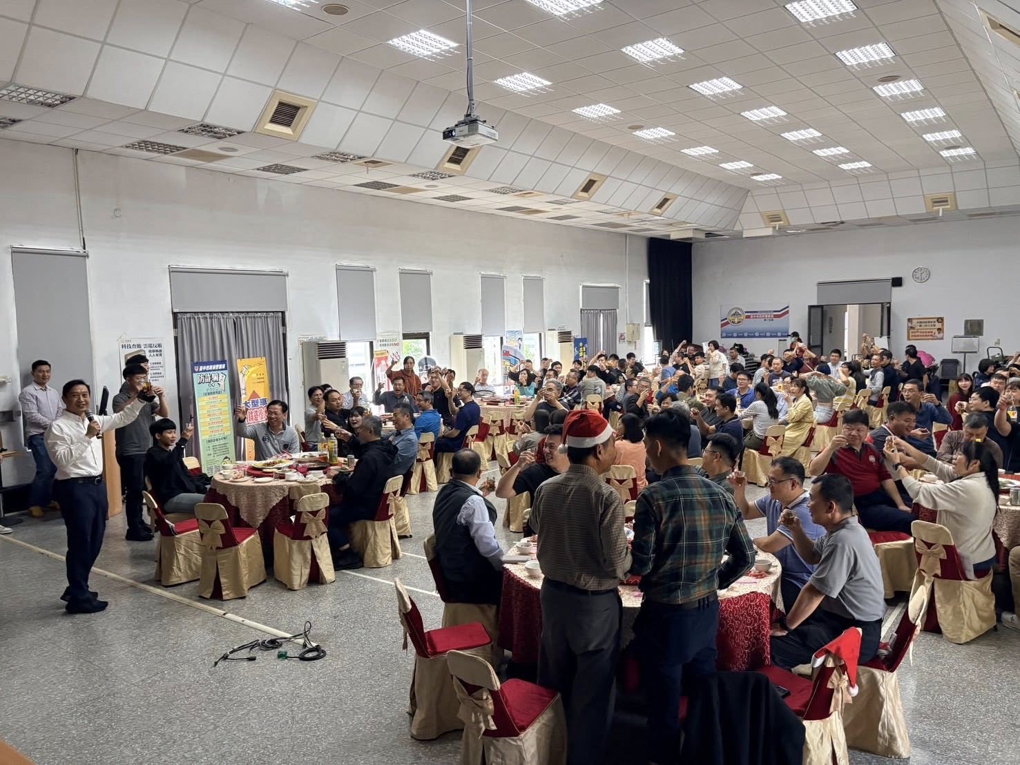 為慰勉同仁一年來在治安、交通及為民服務等各項勤務上的辛勞付出,並提升團隊士氣、強化向心力,臺中市政府警察局第一分局於114年12月24日在分局禮堂舉辦12月份聯合勤教,結合下半年員警座談會暨歲末感恩活動,與同仁一同回顧年度成果、迎向嶄新年度。活動現場特別準備外燴餐點及烤全豬,氣氛溫馨熱絡。