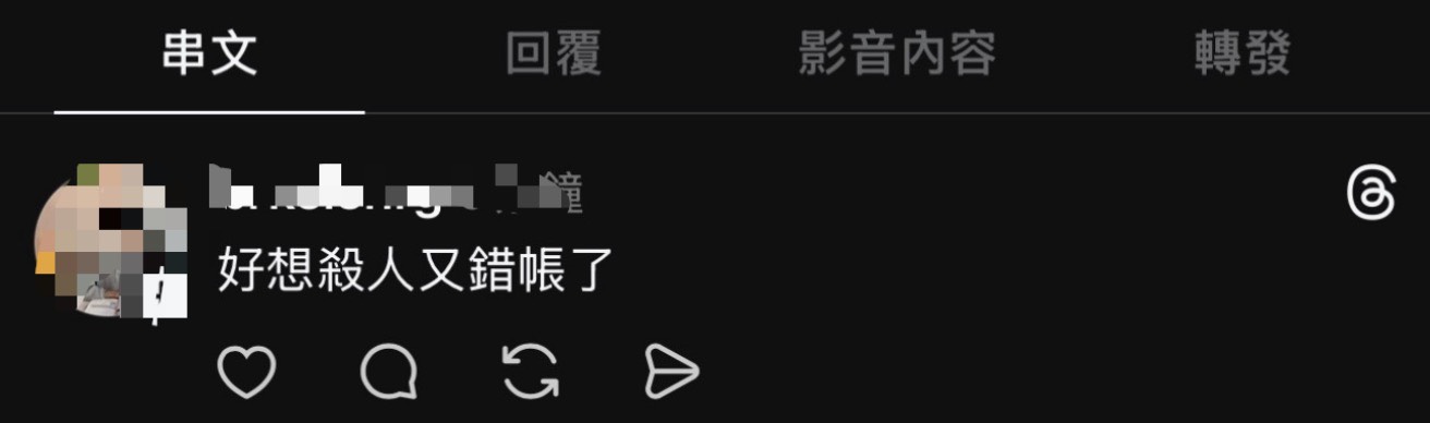 宜蘭縣警察局近日分別接獲民眾檢舉及於網路蒐報,在社群軟體Threads上分別有2名網友各別發布「台灣人民素質真是一級棒,是我當殺人犯一定到處砍,反正最後都會怪政府」、「好想殺人又錯帳了」等留言,疑有恐嚇或預告犯罪意圖,引起網友恐慌。