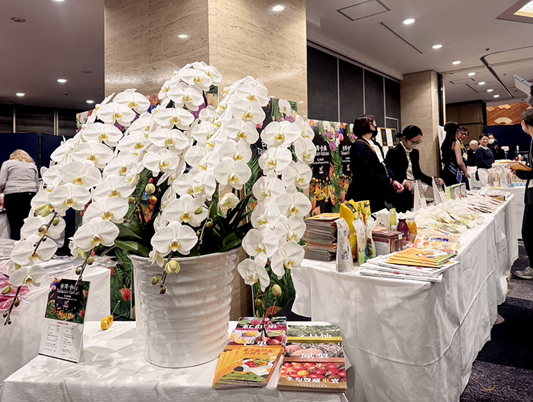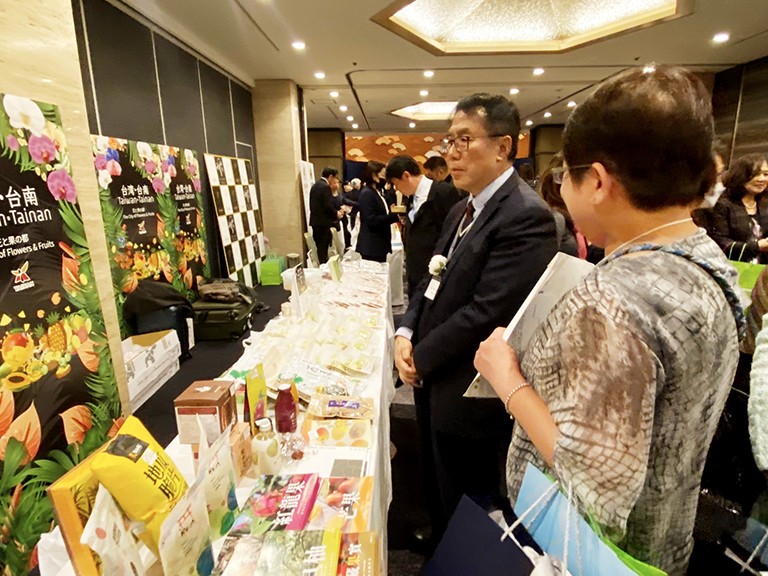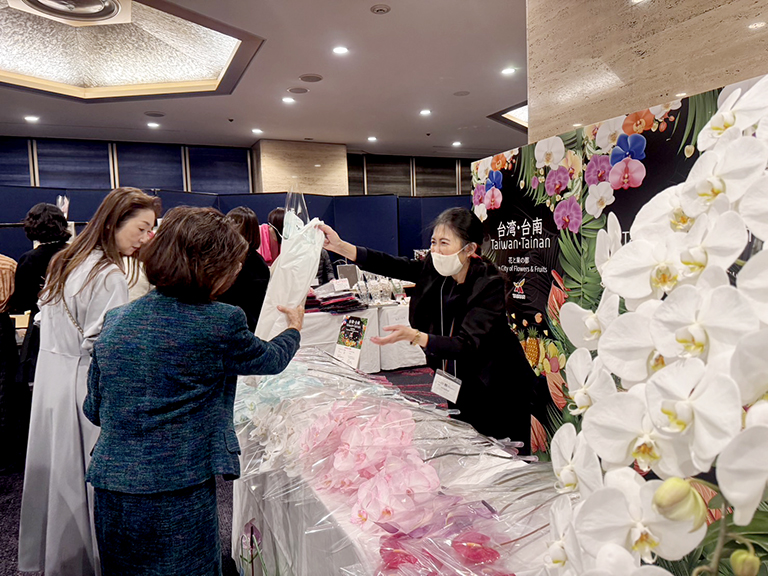 今年台南主題館以花與果之都──「花と果の都・台南 The City of Flowers & Fruits – Tainan, Taiwan」為主軸,展售蘭花、火鶴花及多項農產加工品,並向在場貴賓介紹台南市豐富且多樣的農產特色。現場也特別準備芒果乾、火龍果乾、台南烏魚子等邀請現場貴賓試吃,讓更多國際貴賓品嘗到台南獨特的風味。