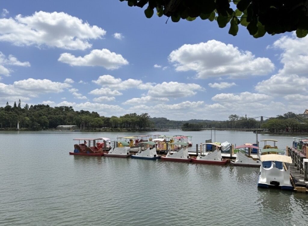 虎頭埤有「台南市民後花園」之稱,今年啟用太陽能遊湖船與電動遊園車。由太陽能發電的環保遊湖船無柴油味、低噪音,航行時格外平穩。遊客搭船繞行湖面、聽解說、吹微風,能從不同角度欣賞四季景色。