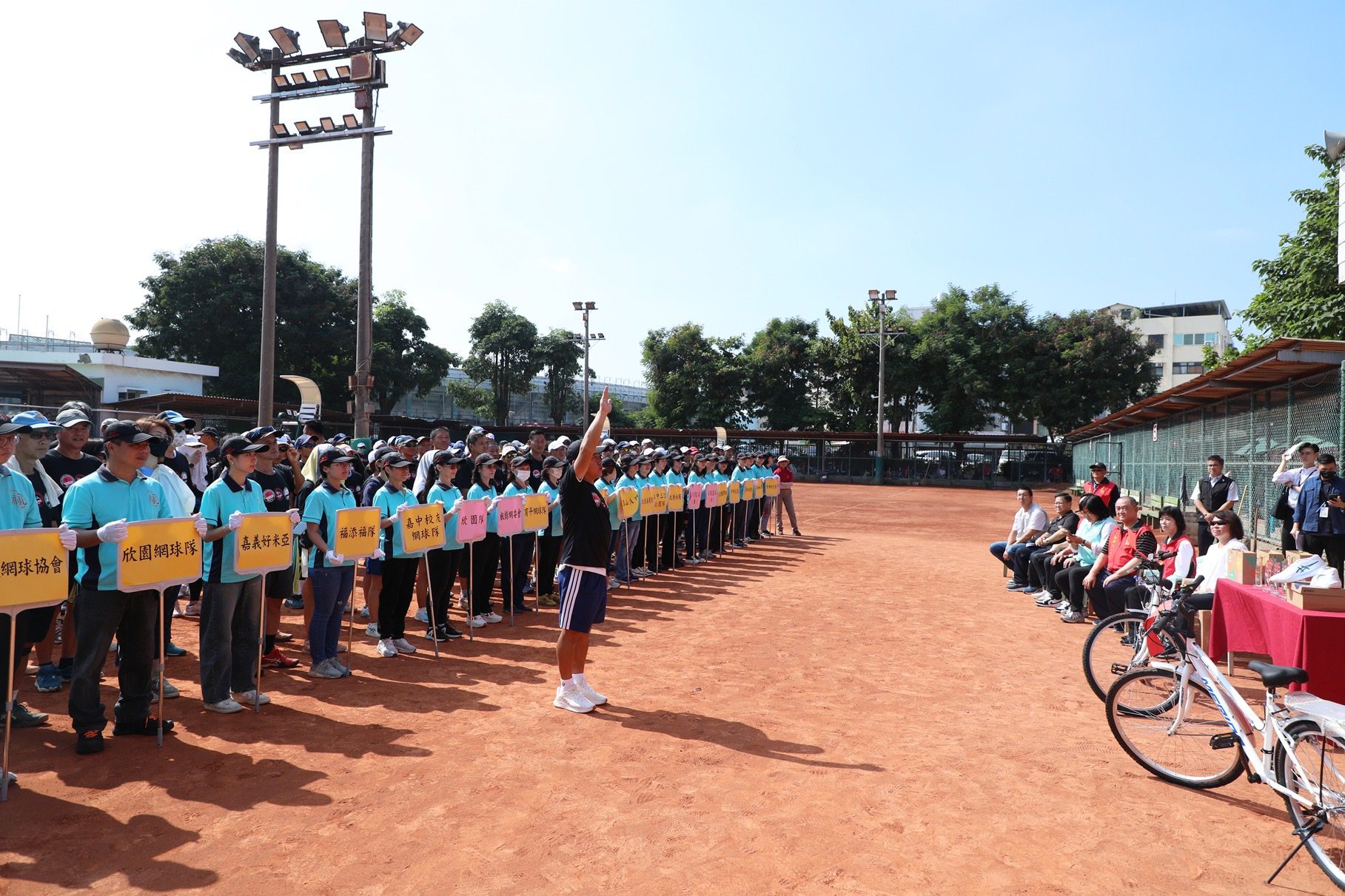 2025第17屆諸羅「世澤盃」全國壯年網球錦標賽(15)日上午於嘉義市立網球場熱鬧開幕,吸引全國近500位網球好手齊聚嘉義市競技交流。現場氣氛熱烈,參賽選手精神奕奕,展現壯年球友對運動的熱情與活力。市長黃敏惠到場為選手們加油打氣,並歡迎大家來嘉義揮拍較勁、切磋球技,共享運動樂趣。