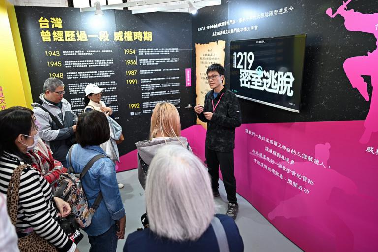 全台首次法稅議題集結了密室逃脫,「1219密室逃脫—走過後威權30年 看見天光」特展吸引民眾參觀。