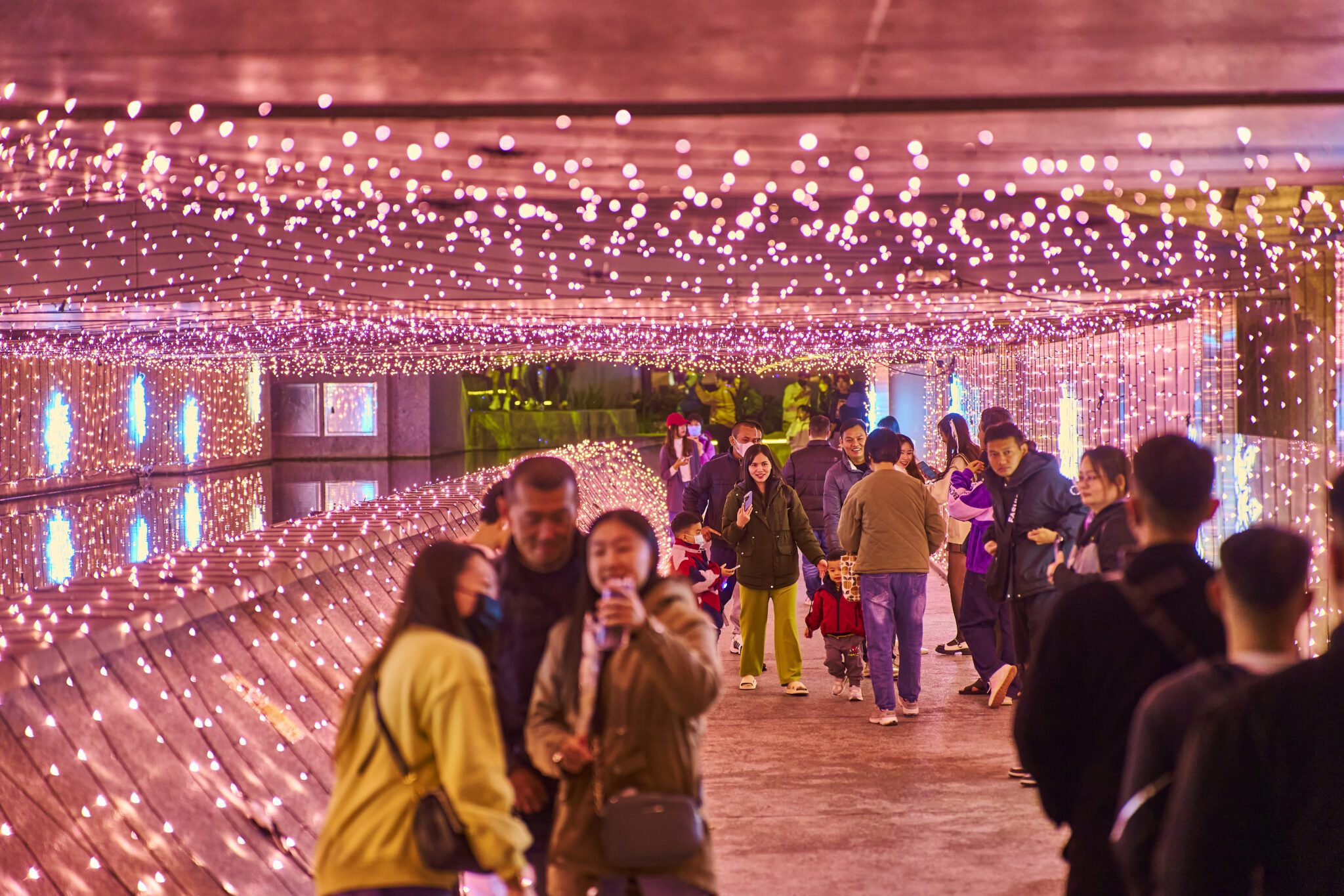此外,綠川展區以「幸福快遞」、「耶誕之森」為主題,耶誕老公公氣膜悄悄現身林中,涵洞延伸的「雪花光廊」更營造夢幻氛圍。民眾不僅能欣賞繽紛燈飾,還能透過市府特別推出的「耶誕美食地圖」,探索繼光、電子街與自由路等商圈的名店小吃,並前往第二市場、中華路夜市大啖老字號巷弄美味。再加上「好樣市集」與豐富的表演節目,讓民眾一次滿足賞燈、尋味、購物、看秀的多重體驗,留下難忘的冬日回憶。