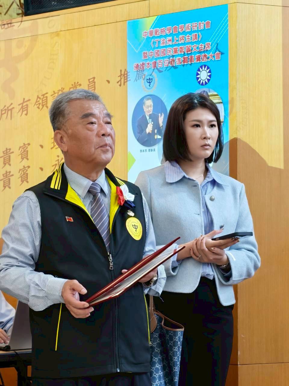 中華戰略學會是由蔣緯國將軍成立,目的為退役將校提供一個學術交流的平台,貢獻所能與戰略思考,現任理事長是淡江大學國際研究學院榮譽教授李本京。今天舉辦的研討會除了邀請鄭麗文出席授證外,也安排前國安會秘書長丁渝洲主講「1948-1954年蔣公日記讀後總結ー挫敗、反省與建設台灣」。