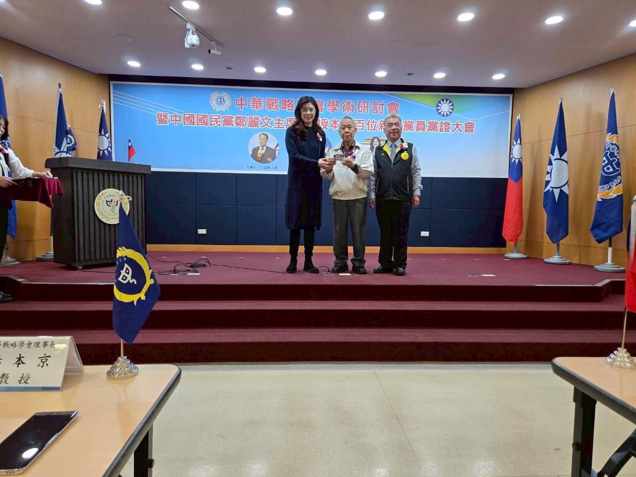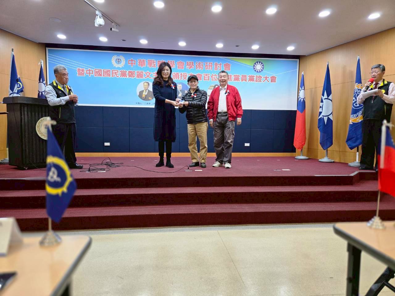 鄭麗文致詞指出,她感謝中華戰略學會不只在思想論述上努力,也實際展現行動力,號召這麼多人入黨,可以說是一個都不放過,她非常感動。今天入黨的成員中,還有一位是228事件受難者的家屬,他決定加入國民黨,也代表了和解,那一段歷史傷口我們要正視,但絕非撕開傷口繼續撒鹽。