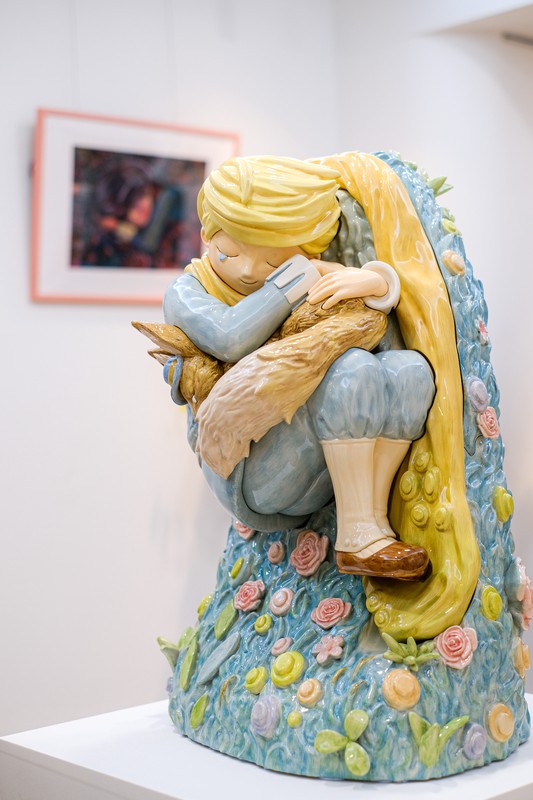 展場亦首次公開《小王子》系列最具代表性的立體雕塑作品,全球唯一、高約 60 公分的雕塑《說好不哭》。該作由 Steven Choi 與日本殿堂級玩具品牌海洋堂合作,以細膩而克制的造型呈現角色精神,成為本次展覽中具高度象徵性的觀看焦點,也彰顯其跨越插畫與立體創作、連結國際工藝體系的創作能量。