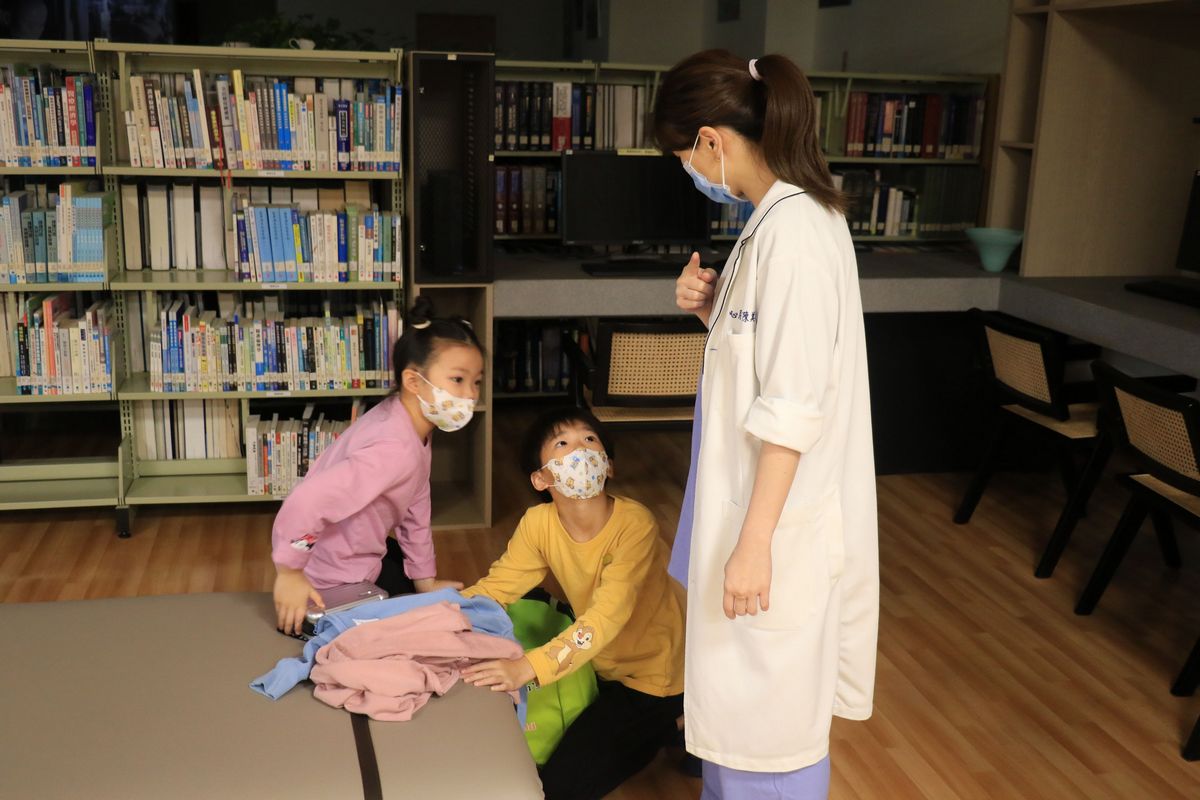 早於八月颱風季節研議確認的同仁子女托育服務,此次鳳凰颱風終於首度登場。教育團隊在臺中市政府宣布停班停課後立即啟動,只要同仁報名即可受理,十二日清晨八時,醫院圖書館搖身一變成為兒童樂園,醫護人員陸續將三至十歲的孩子交由慈濟志工照顧。志工以故事、桌遊與學習活動陪伴孩子,兼顧安全與心靈成長,讓家長得以無憂投入工作。